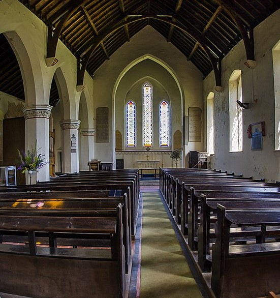 The creations of the Simcoe workshop survive in at least four churches in the Dunkeswell area and one in Canada. Dunkeswell Abbey Church, however, is the most complete product of the women’s workshop and expression of their worldview. The altar, font, capitals, corbels, stained glass, pews and pulpit are all thought to have been produced by the Simcoe women in their workshop.